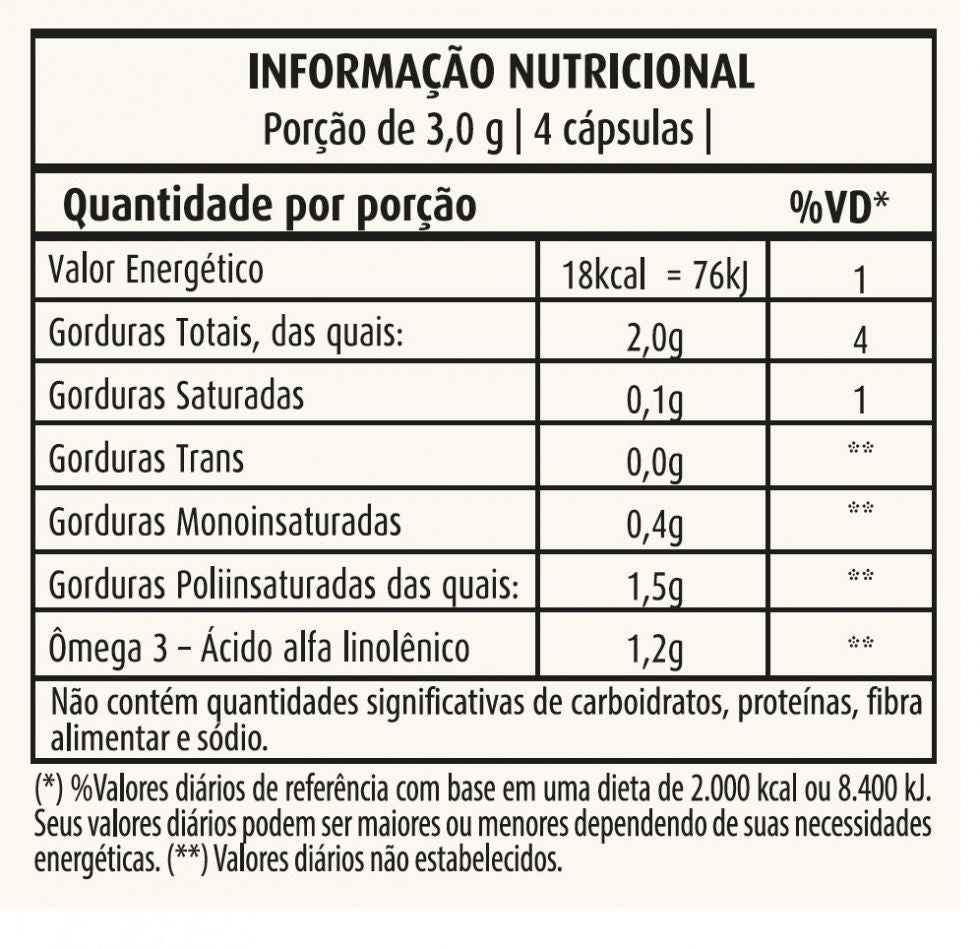 Óleo de Linhaça Dourada 760mg (60 caps) O Óleo de Linhaça é extraido da semente de linhaça - Linum usiotatissimum, que é uma planta herbácea originária do Oriente e atualmente cultivada também na Europa e na América do Norte. O óleo extraído dessas sementes é rico em ácidos graxos Ômega 3, 6 e 9. BENEFÍCIOS * Ricas em nutrientes;* Rica em Ômega 3;* Fonte de lignanas, que podem reduzir o risco de câncer;* Rica em fibras dietéticas;* Pode melhorar o colesterol;* Pode reduzir a pressão arterial;* Eles contêm proteína de alta qualidade;* Linhaça pode ajudar a controlar o açúcar no sangue. Embalagem disponível: frasco contendo 60 cápsulas.