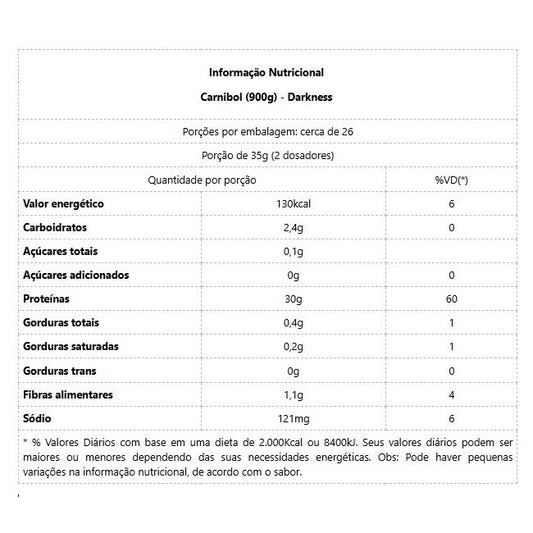 Carnibol (900g) Carnibol Darkness é um suplemento desenvolvido a base de proteína miofibrilar hidrolisada da carne bovina, propriedade importante na construção muscular. Carnibol Darkness ain...