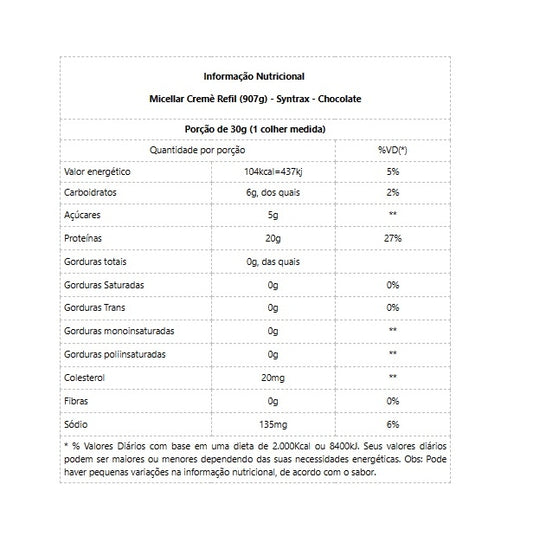 Micellar Crème Refil (907g) Micellar Creme é o modelo de excelência para um produto de caseína. É composto por Caseína Micelar pura e fresca, não contaminada com sais de caseinato inferiores....