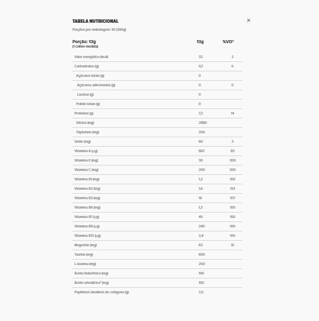 Collagen Resilience (300g) - Essential Nutrition Um corpo relaxado, que consegue se reequilibrar e voltar à homeostase, exerce sua função de autorreparação com muito mais eficiência. Esses momentos preciosos, quando corpo e mente se acalmam e entram em equilíbrio, são fundamentais para enfrentar com mais poder os períodos de adaptação. Encontrar formas de dedicar esse tempo e carinho a nós mesmos pode fazer muita diferença no nosso bem-estar diário. Collagen Resilience chega para ser um aliado fundamental da sua pele e do seu corpo. Collagen Resilience é uma fórmula inspirada no funcionamento, na beleza e na sabedoria do seu corpo e como isso se reflete na sua pele. Por isso, associa de maneira inteligente os melhores ingredientes, que trabalham juntos a seu favor e ajudam a manter a harmonia e a sinergia da formulação. Benefícios: - Rico em vitaminas e minerais;- Ingredientes selecionados;- Pele mais firme e hidratada;- Age contra os radicais livres;- Melhora o sistema imune.